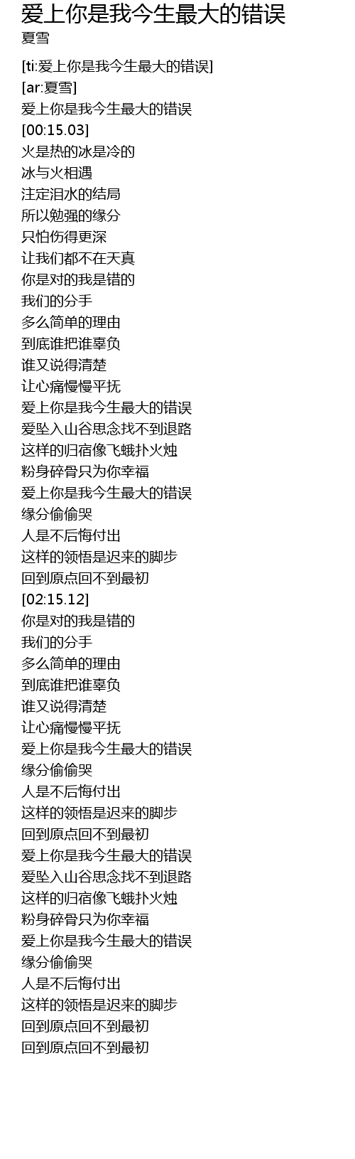 | [00:01.224] | 爱上你是我今生最大的错误 |