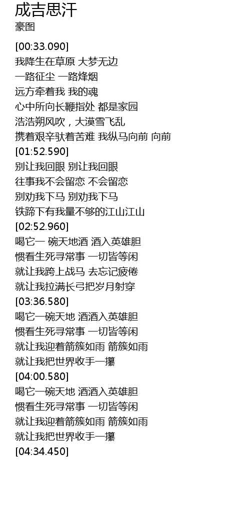| [00:49.970] | 我降生在草原 大梦无边 |