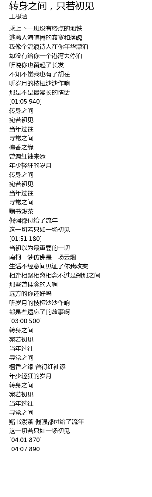 | [03:02.110] | zhuǎn shēn zhī jiān |