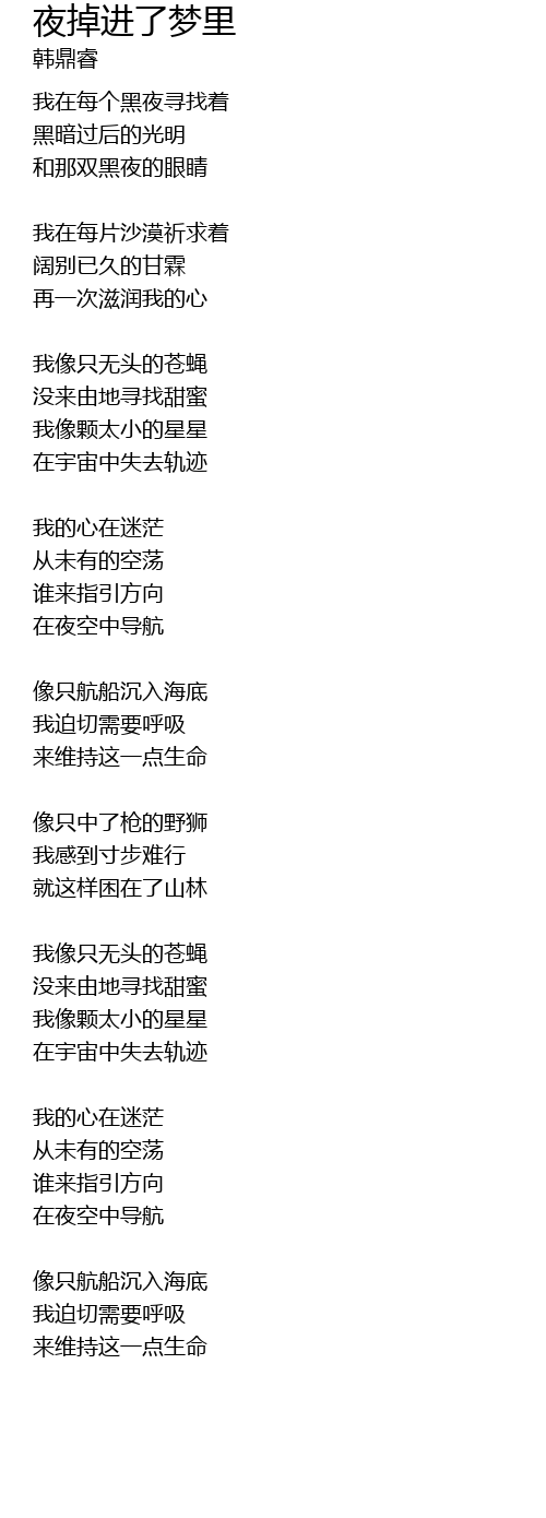 | wǒ zài měi gè hēi yè xún zhǎo zháo | |