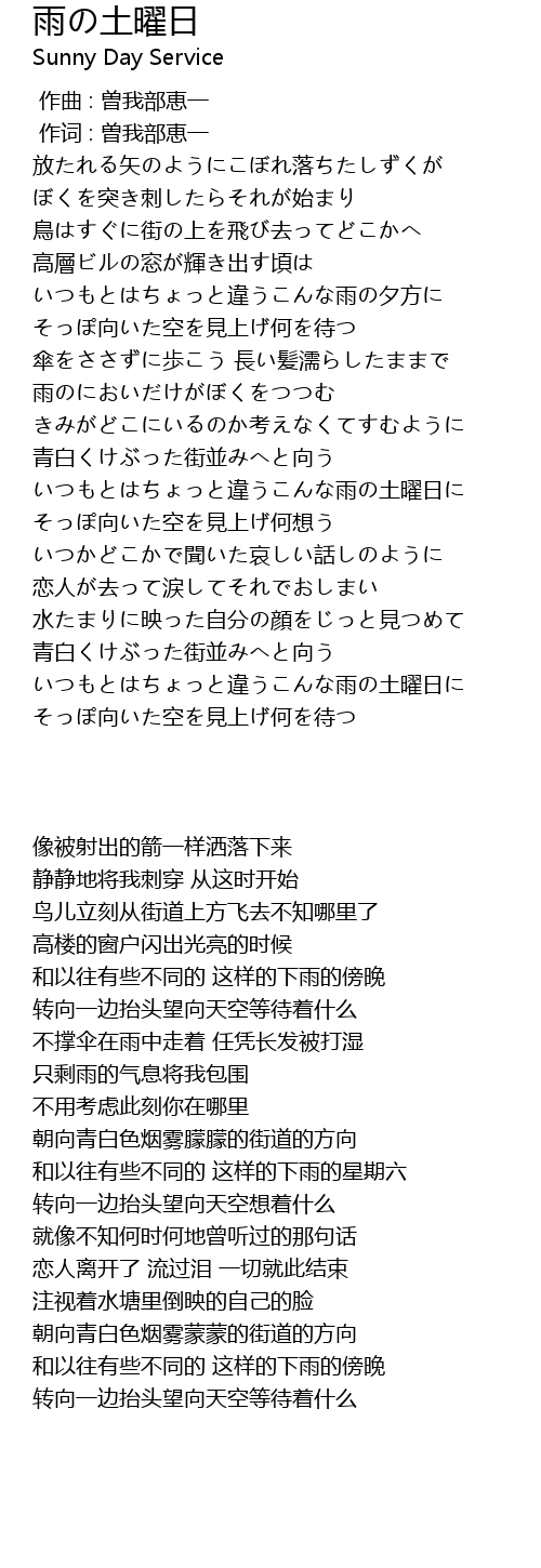 | Song | 雨の土曜日 |