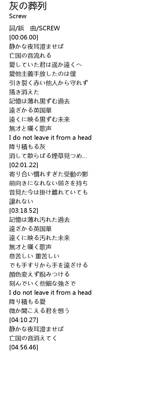 | [01:50.01] | 降り積もる灰 |