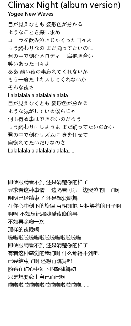 | [00:44.000] | もう終わりなの まだ踊ってたいのに |