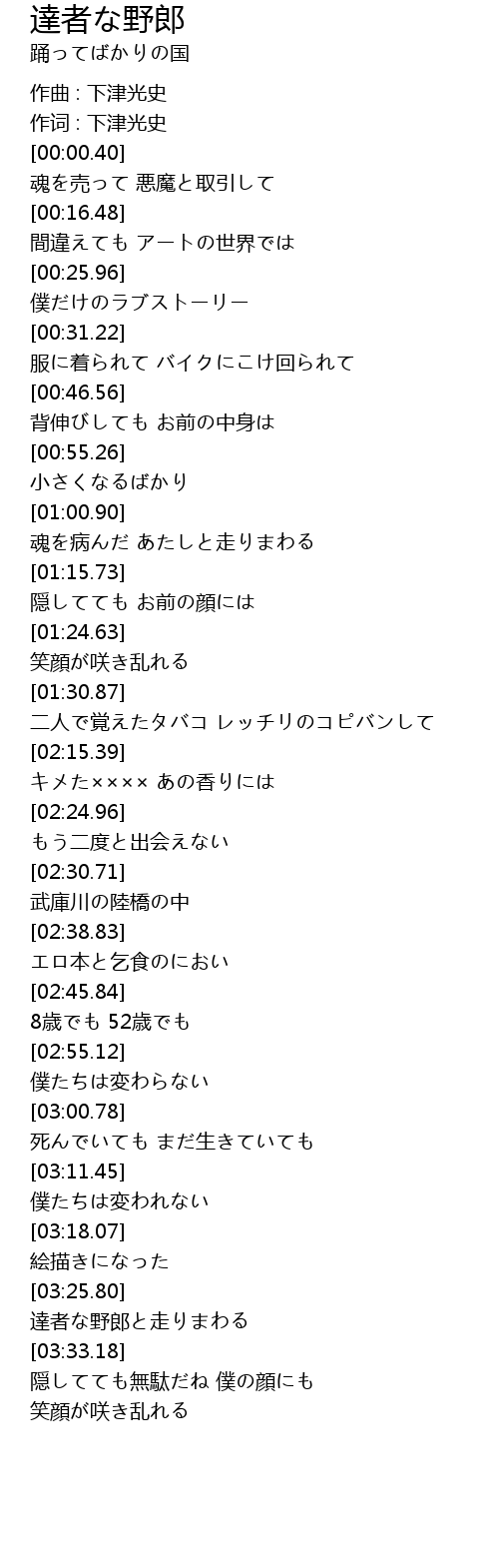 | [01:03.85] | 魂を病んだ あたしと走りまわる |
