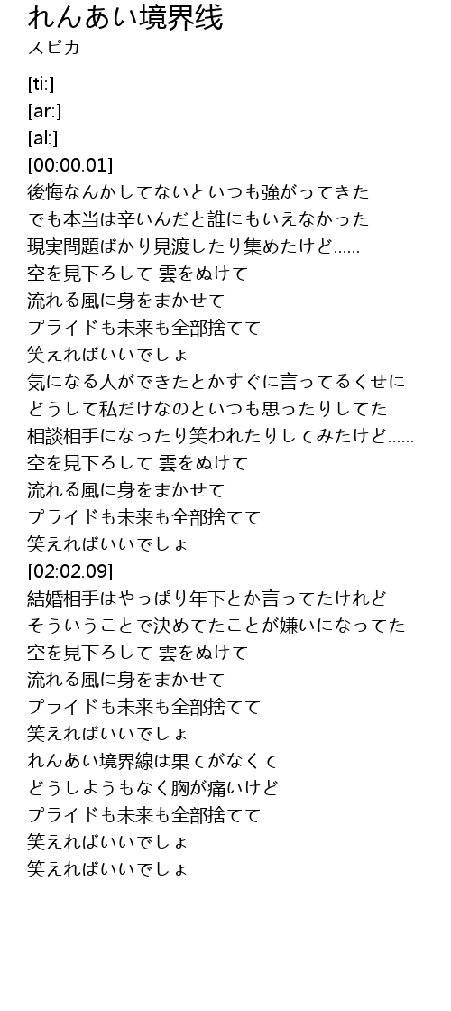 | [03:03.01] | れんあい境界線は果てがなくて |