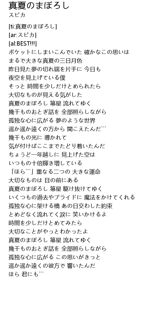 | [03:31.48] | 真夏のまぼろし 箒星 流れてゆく |