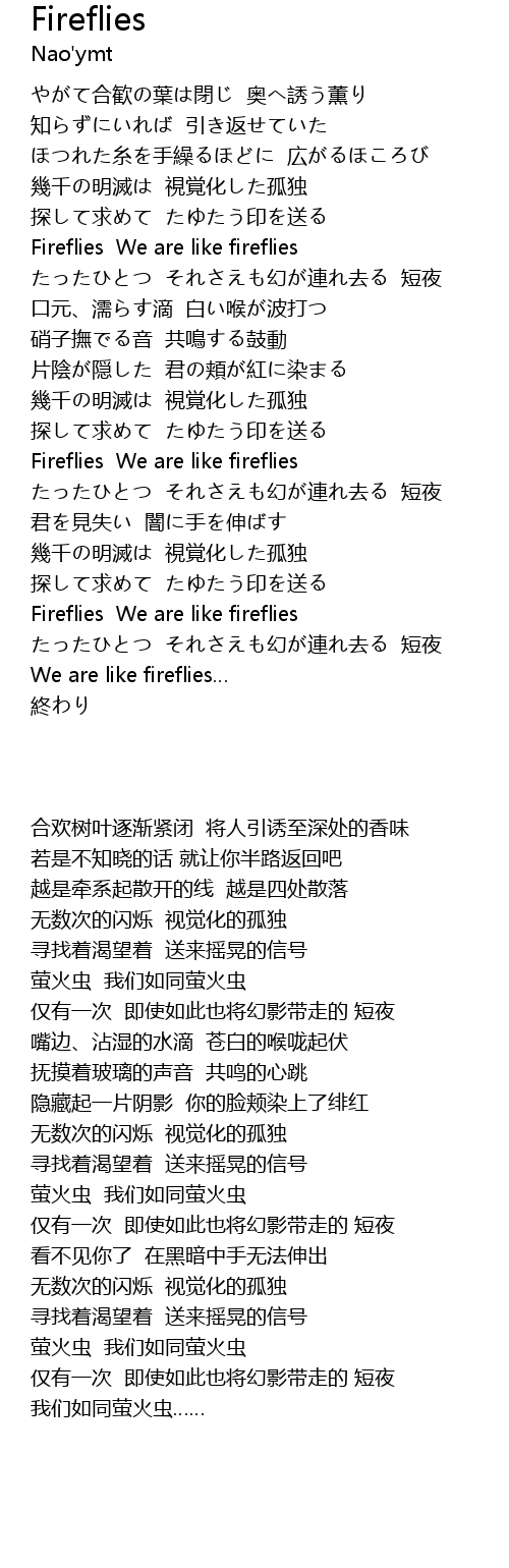 | [00:35.79] | やがて合歓の葉は閉じ 奥へ誘う薫り |