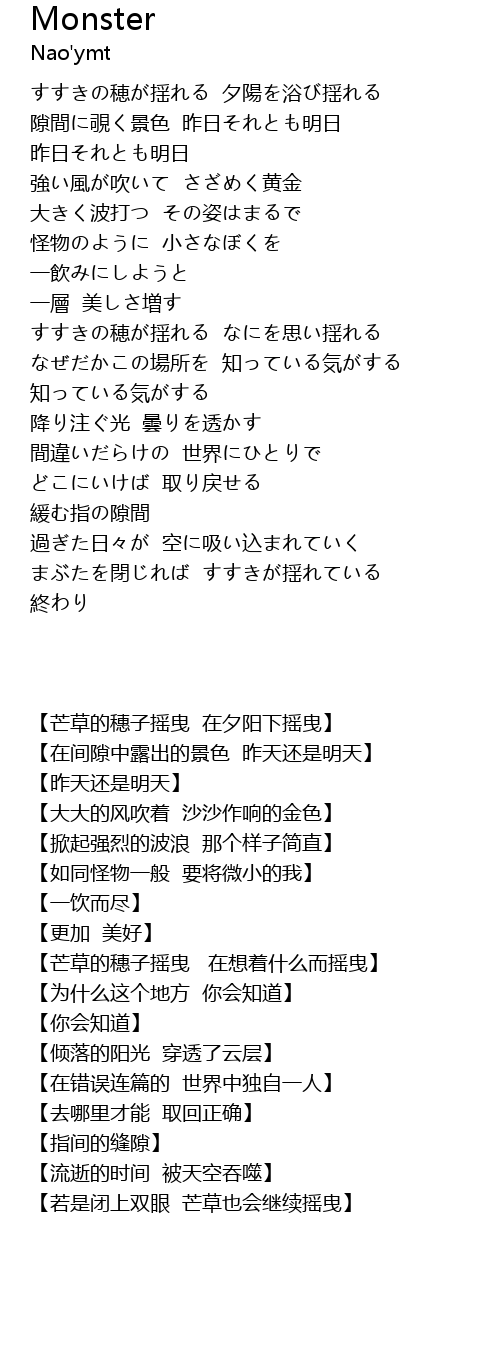 | [01:08.38] | 怪物のように 小さなぼくを |