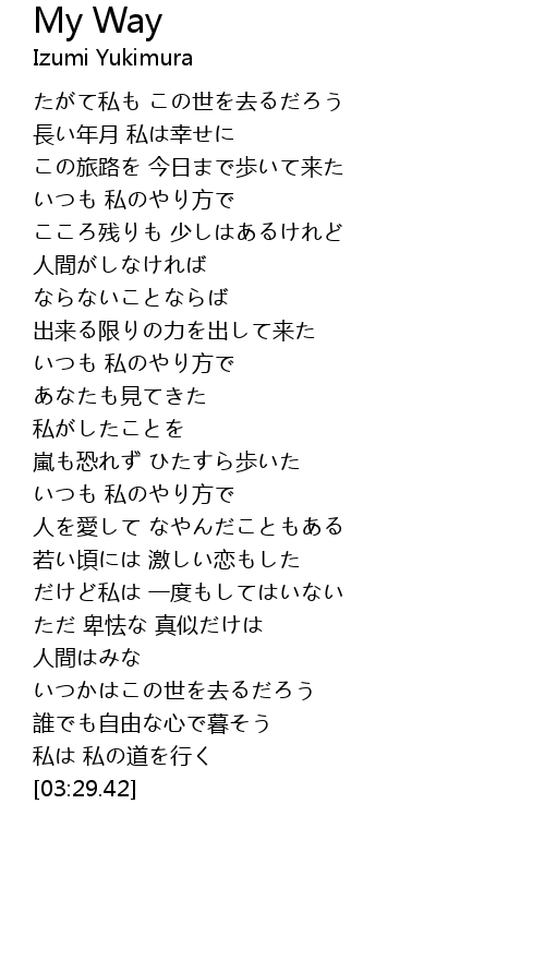 | [03:08.11] | 私は 私の道を行く |