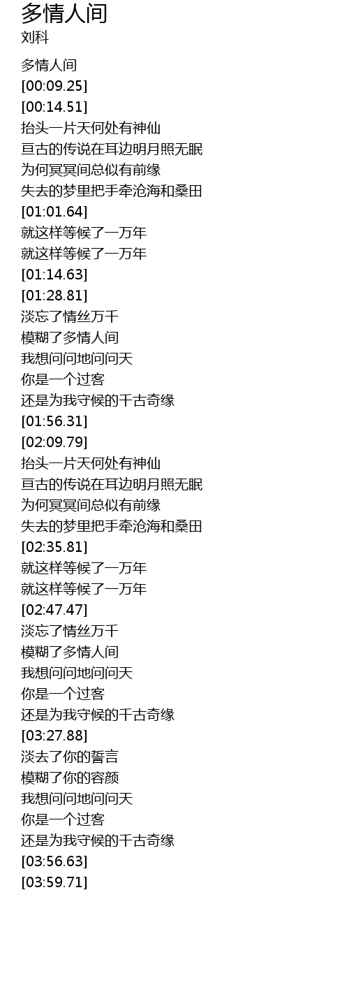 | [01:33.08] | mó hu le duō qíng rén jiān |