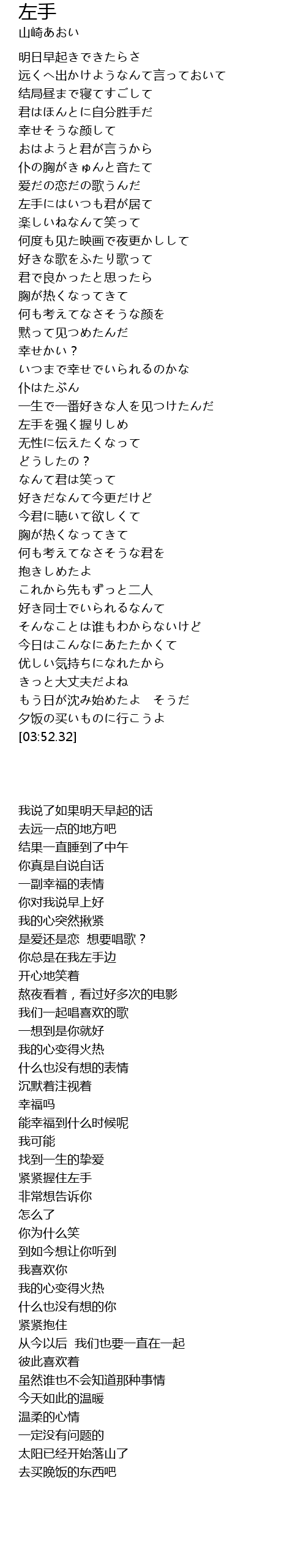 | [02:37.74] | zuǒ shǒu qiáng wò |