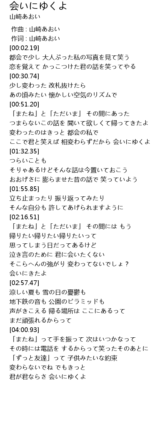 | [04:36.26] | 君が君ならさ 会いにゆくよ |