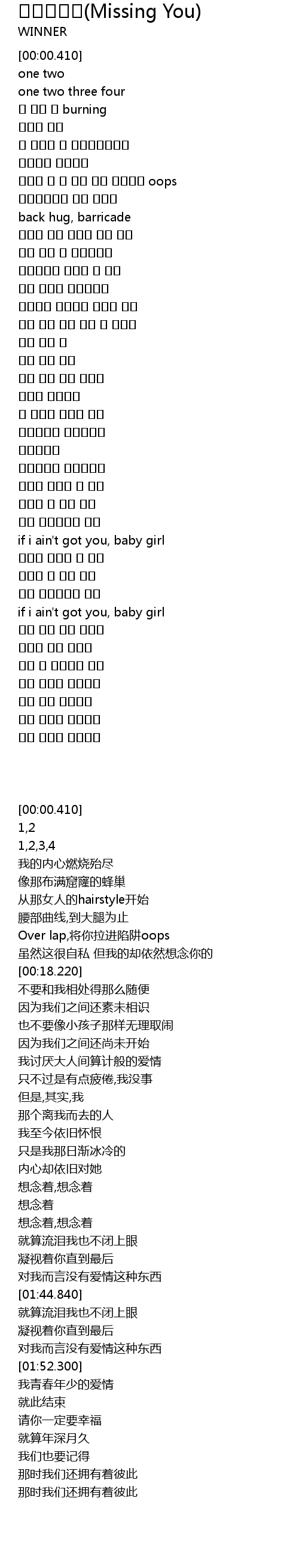 | [01:24.900] | 그리워해요 그리워해요 |