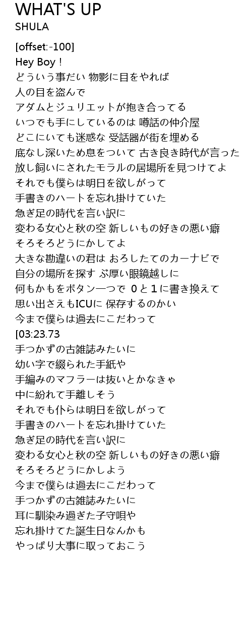 | [03:19.84] | 今まで僕らは過去にこだわって |