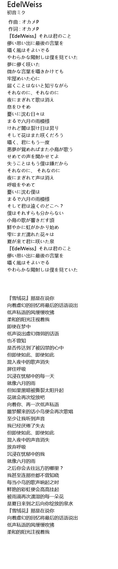 | [02:47.56] | 『EdelWeiss』それは君のこと |