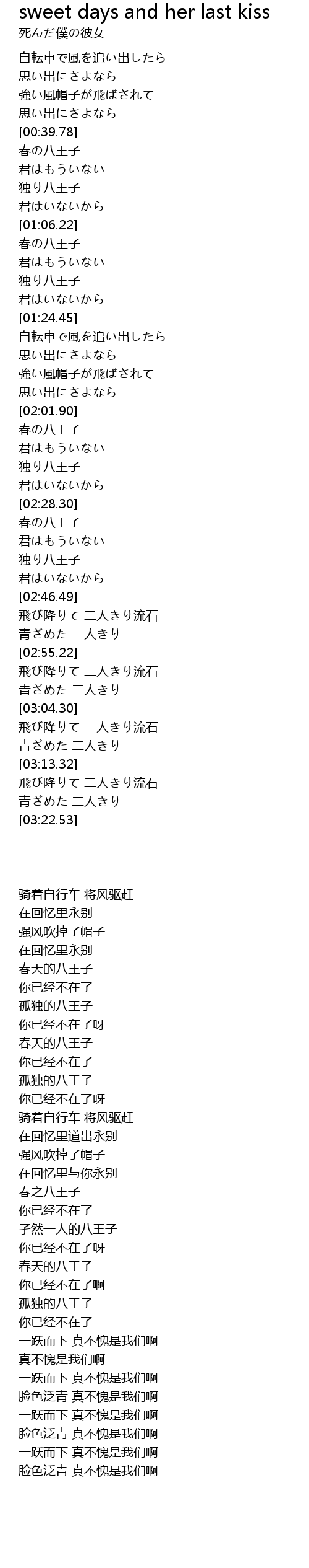 | [03:14.42] | 飛び降りて 二人きり流石 |