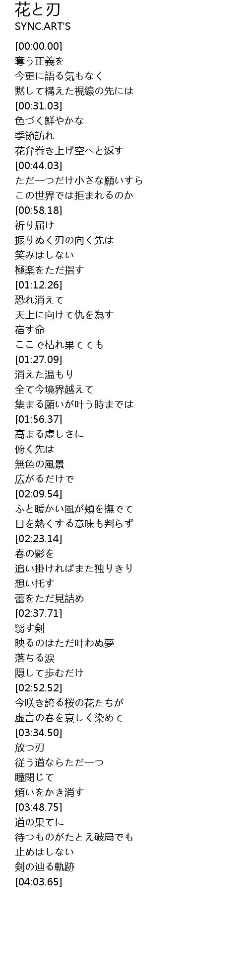 | [03:34.97] | 放つ刃 |
