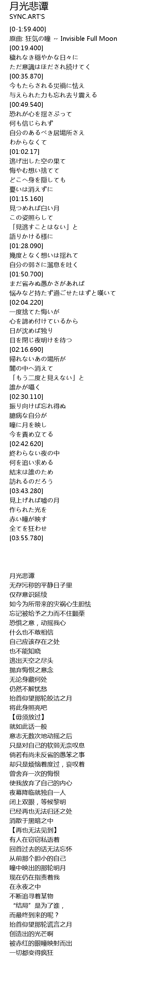 | [00:00.100] | yuan qu: kuang qi tong Invisible Full Moon |