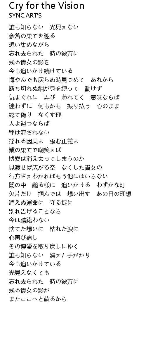 | [02:34.632] | 闇の中 縋る様に 追いかける わずかな灯 |