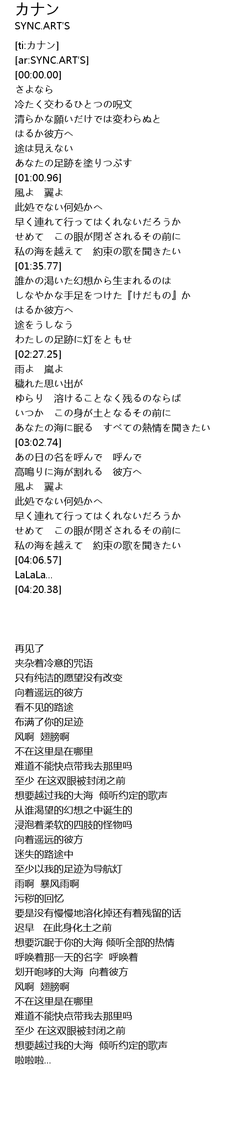| [03:56.12] | 私の海を越えて 約束の歌を聞きたい |