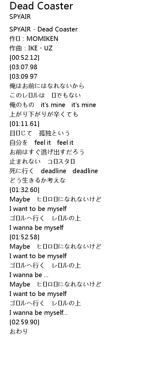 | [00:00.00] | SPYAIR - Dead Coaster |