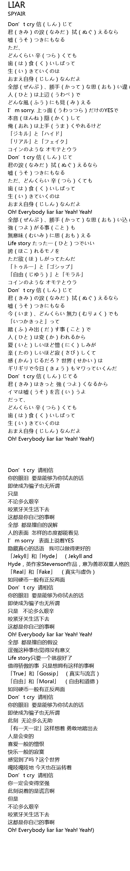 | [02:46.600] | Oh! Everybody liar liar Yeah! Yeah! |