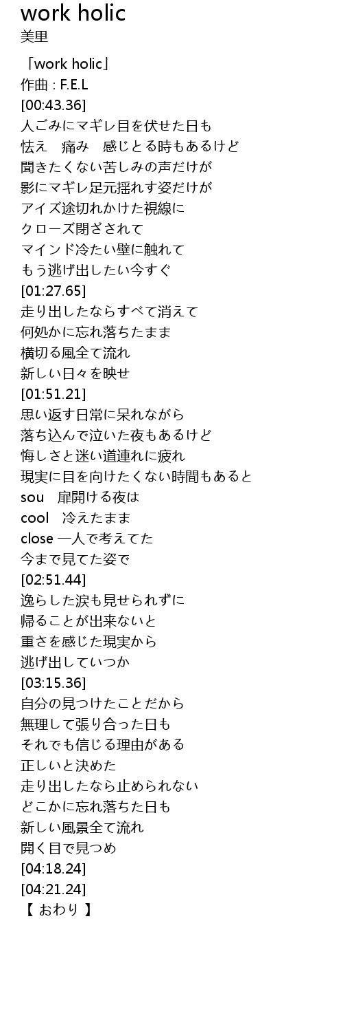 | [00:03.36] | 「work holic」 |