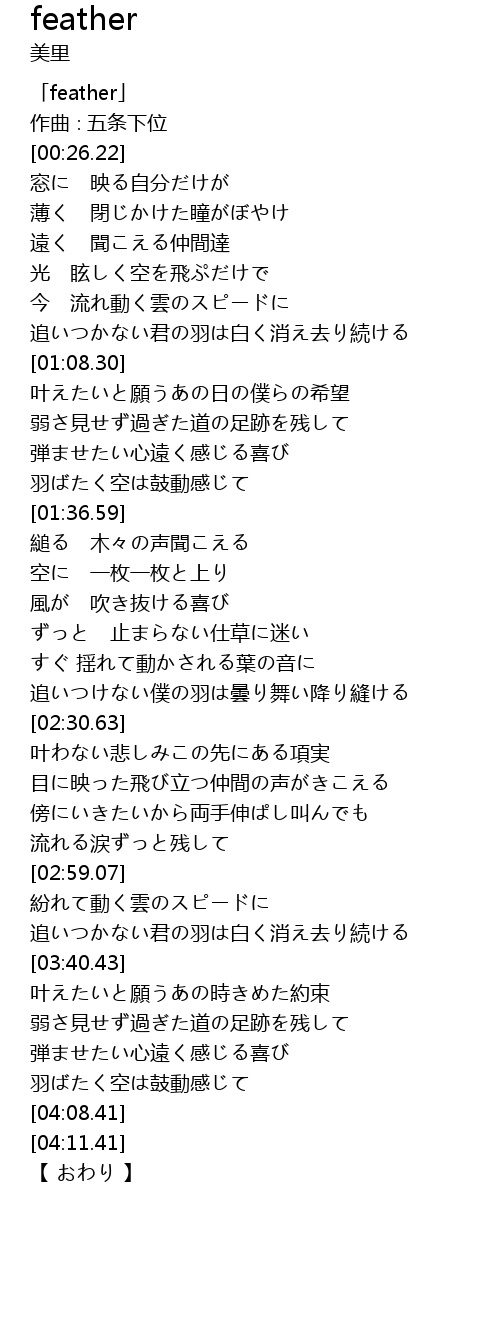 | [00:01.22] | 「feather」 |