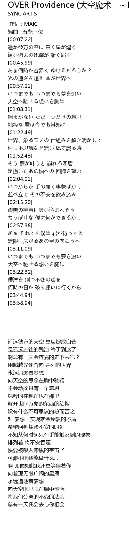 | Song | OVER Providence (大空魔术 ~ Magical Astronomy ) |