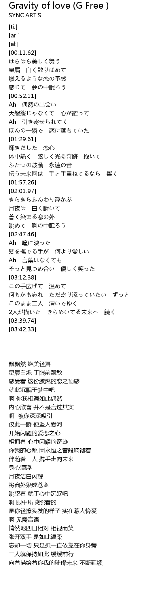 | [01:44.38] | ふたつの鼓動 永遠の音 |