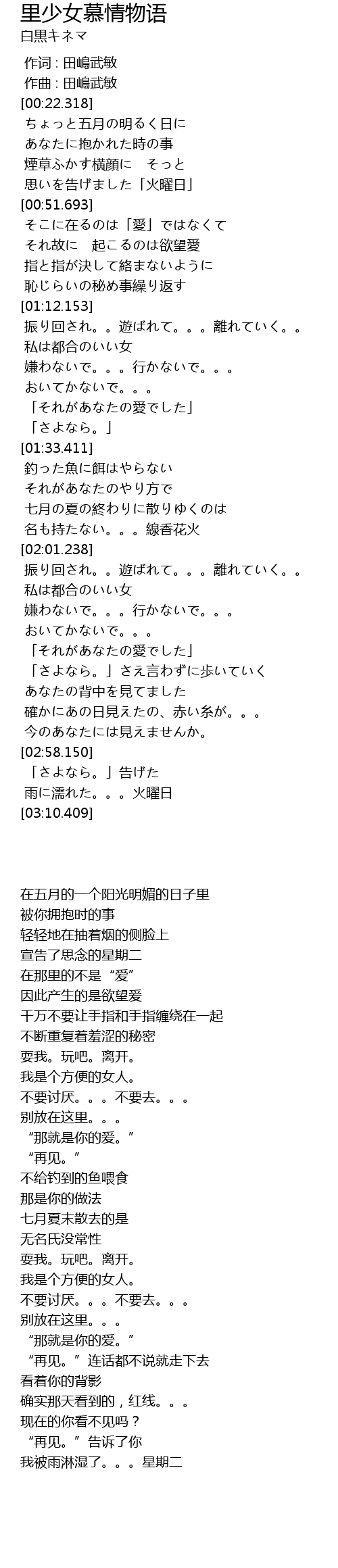 | [00:47.114] | 思いを告げました「火曜日」 |
