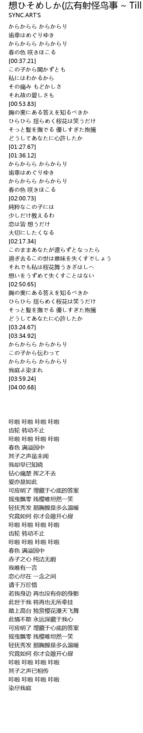 | [02:59.38] | ひらひら 揺らめく桜花は笑うだけ |