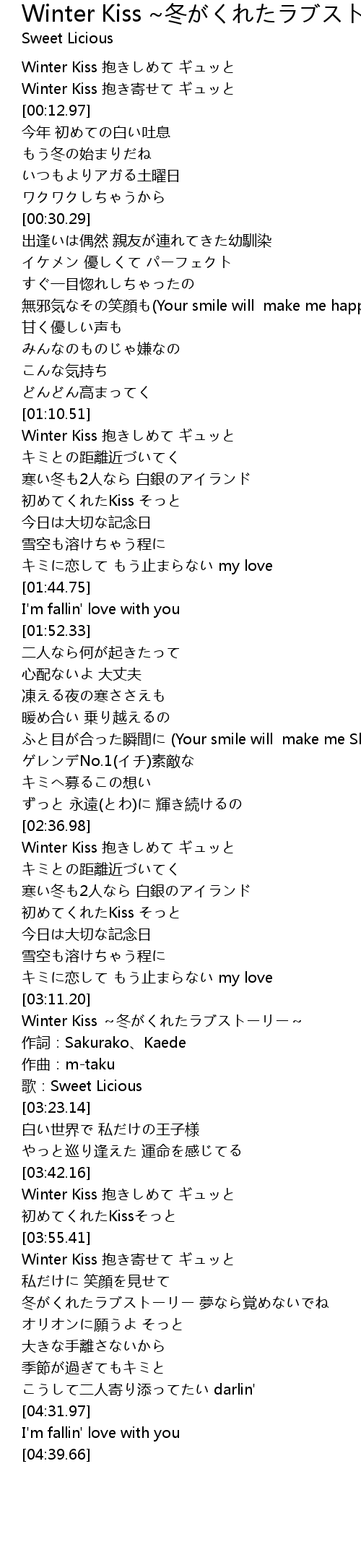 | [02:37.98] | Winter Kiss 抱きしめて ギュッと |
