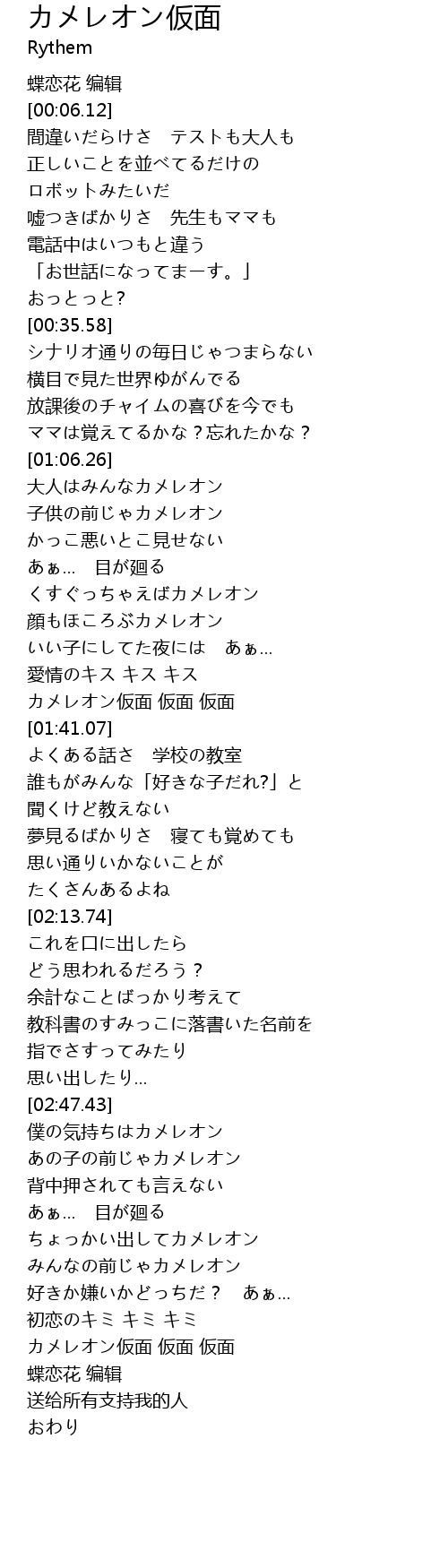 | [03:17.62] | カメレオン仮面 仮面 仮面 |