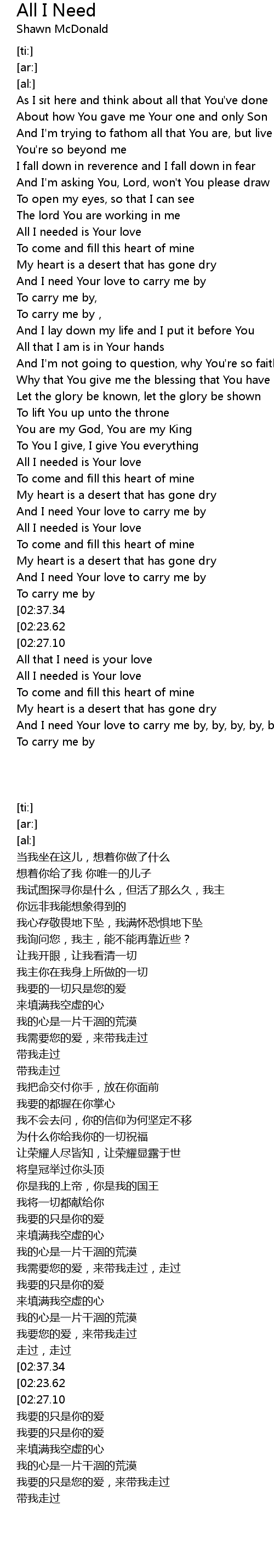 | [03:14.70] | And I need Your love to carry me by, by, by, by, by |