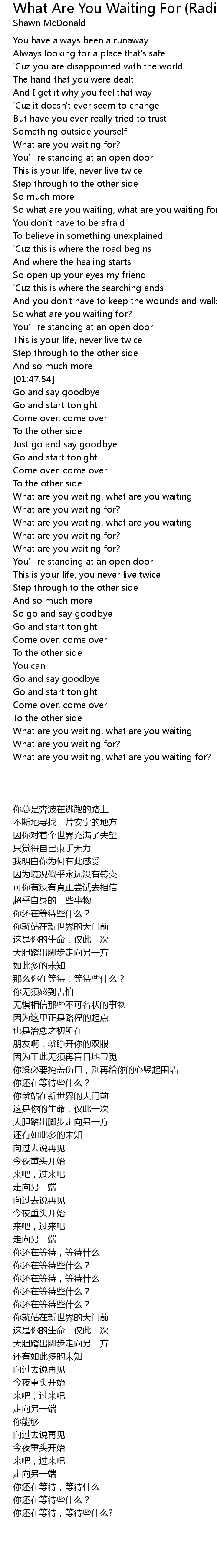 | [00:56.30] | So what are you waiting, what are you waiting for? |