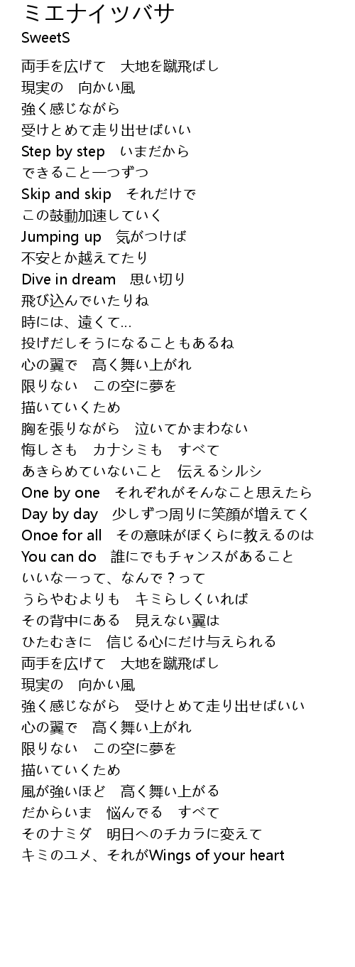 | [04:20.08] | キミのユメ、それがWings of your heart |