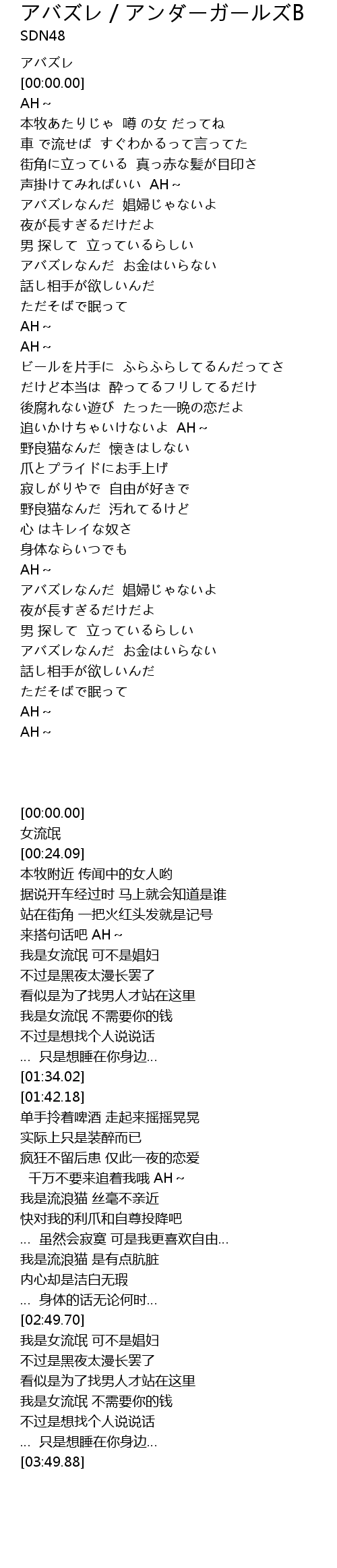 | [01:19.62] | アバズレなんだ お金はいらない |