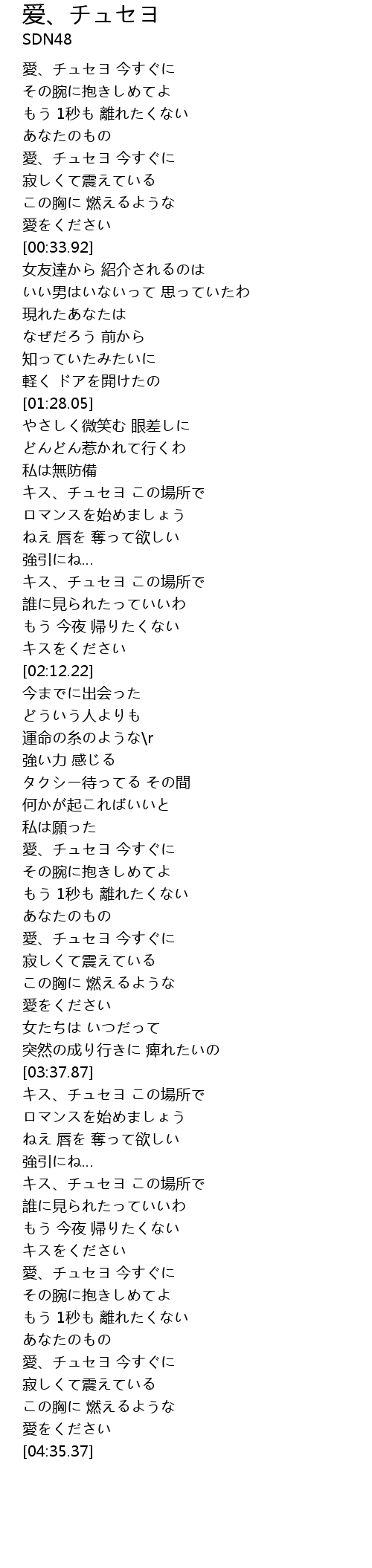 愛、チュセヨ 今すぐに |