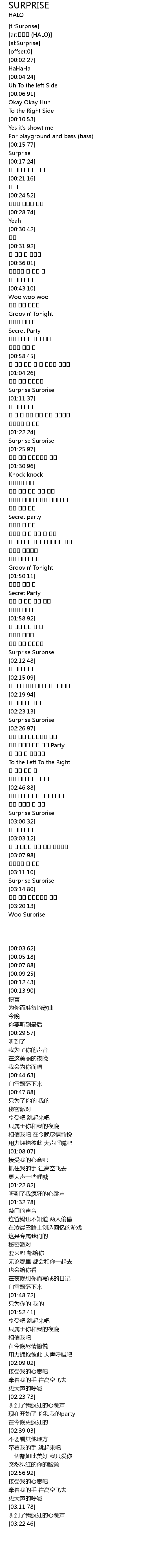 | [01:34.72] | 둘이 몰래 엄마 아빠 몰래 |