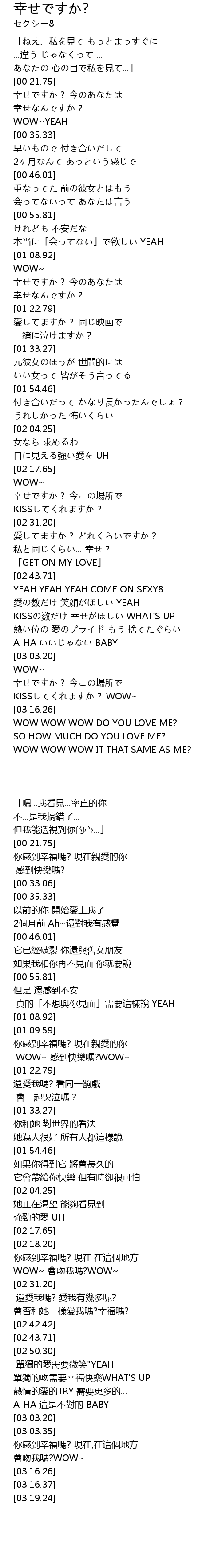 | [02:50.30] | YEAH YEAH YEAH COME ON SEXY8 |