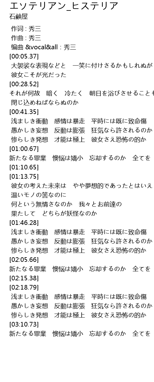 | [00:48.37] | 愚かしき妄想 反動は膨張 狂気なら許されるのか |