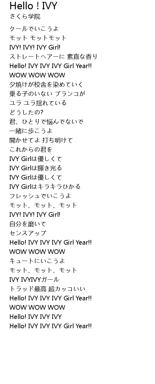 | Song | Hello ! IVY |