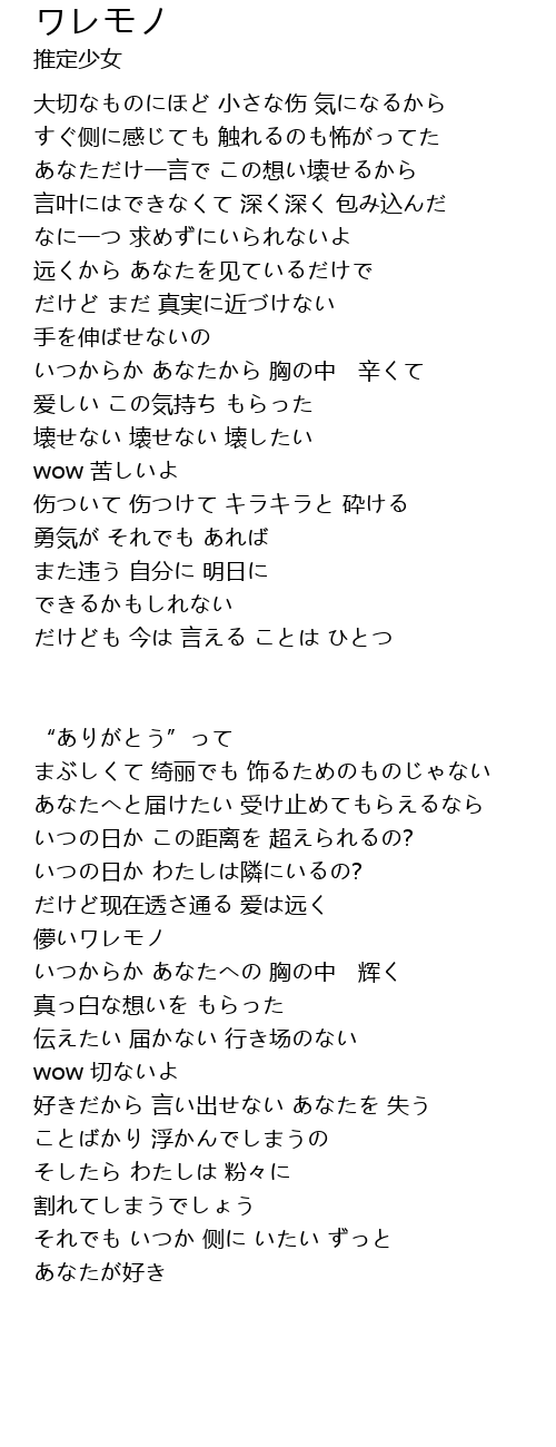 | Song | ワレモノ |