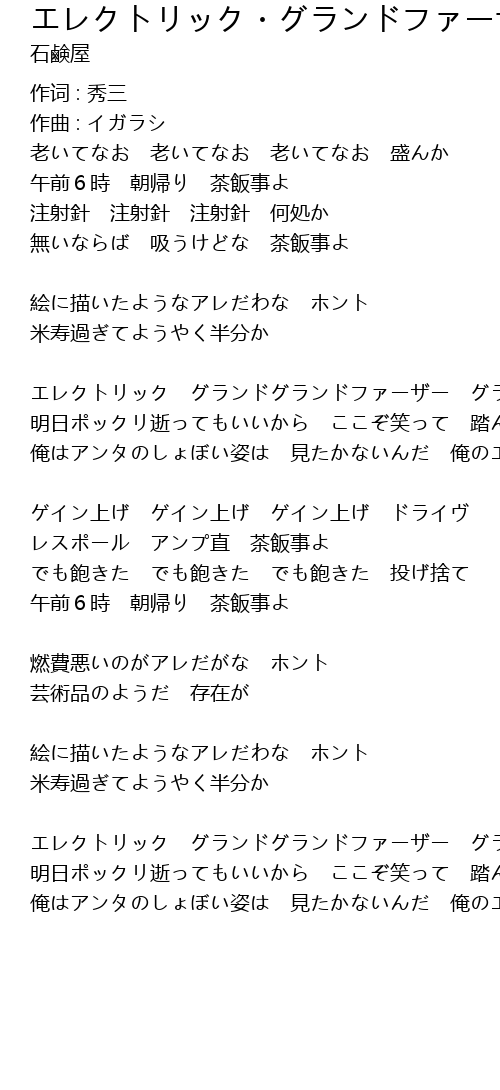 エレクトリック・グランドファーザー  Lyrics