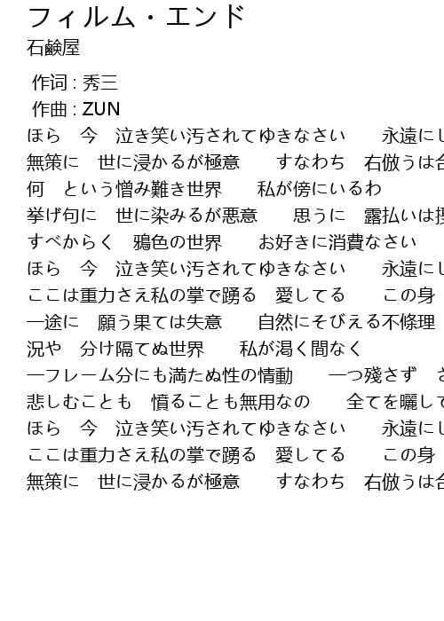 | [03:43.73] | 無策に 世に浸かるが極意 すなわち 右倣うは合理 |