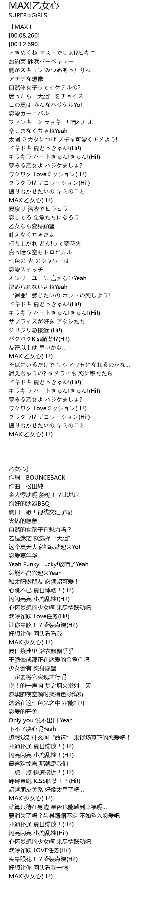 | [03:07.340] | MAX!乙女心(Hi!) |