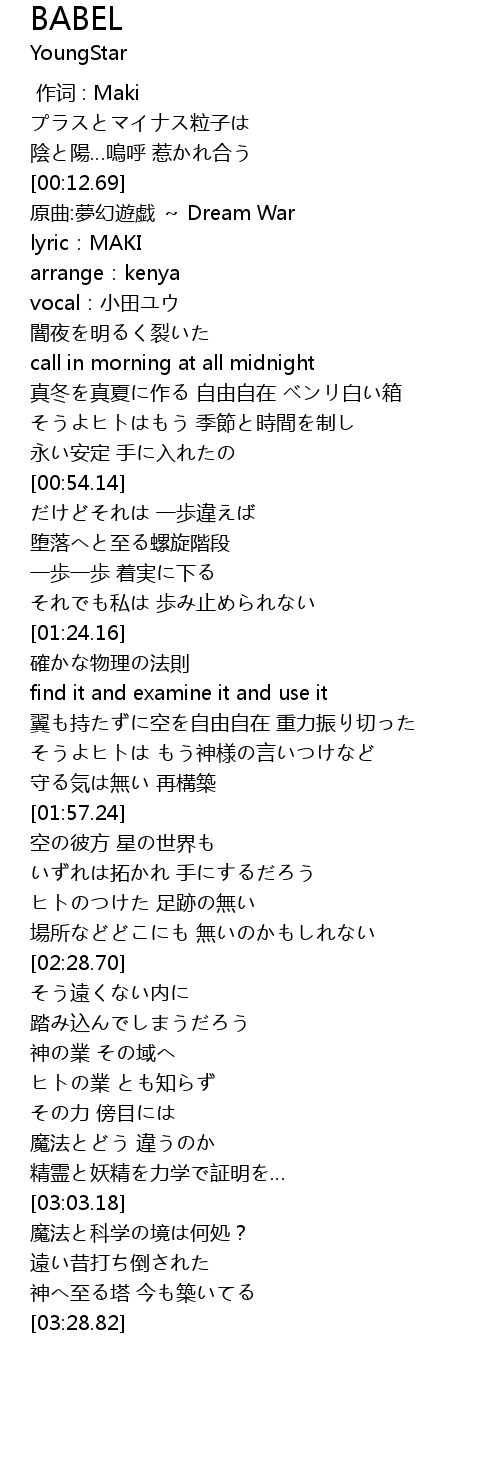 | [00:21.19] | 原曲:夢幻遊戯 ~ Dream War |