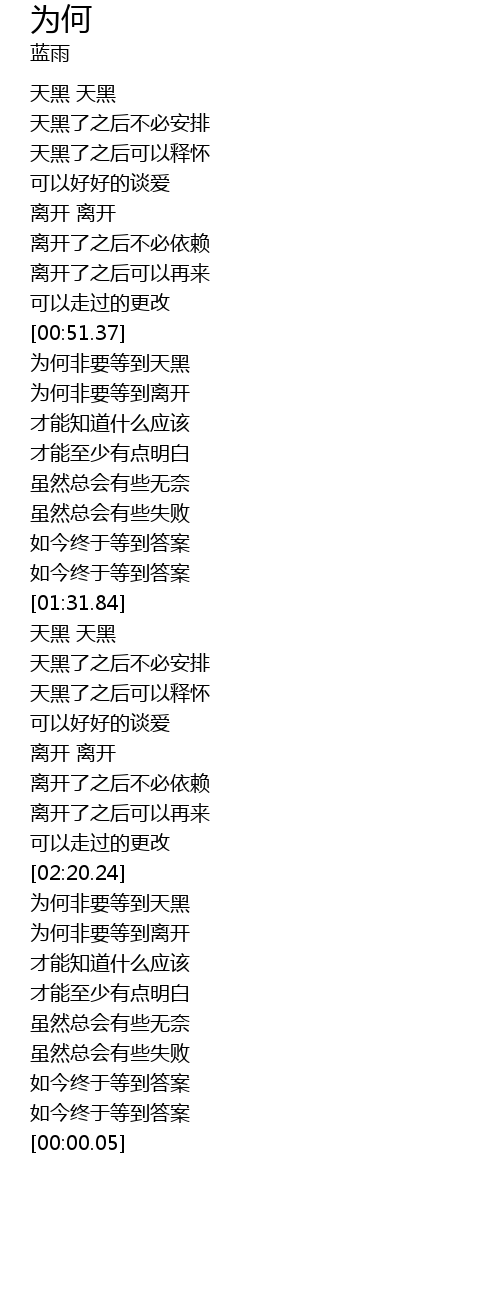 | [02:28.31] | wèi hé fēi yào děng dào lí kāi |