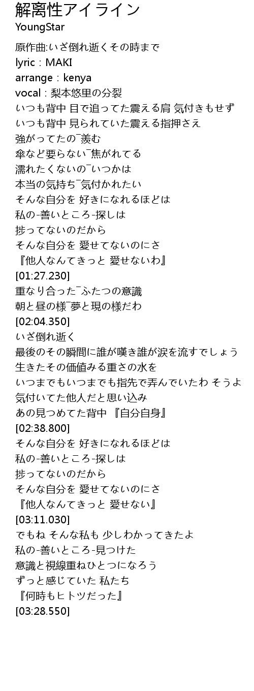 | [00:10.730] | 原作曲:いざ倒れ逝くその時まで |